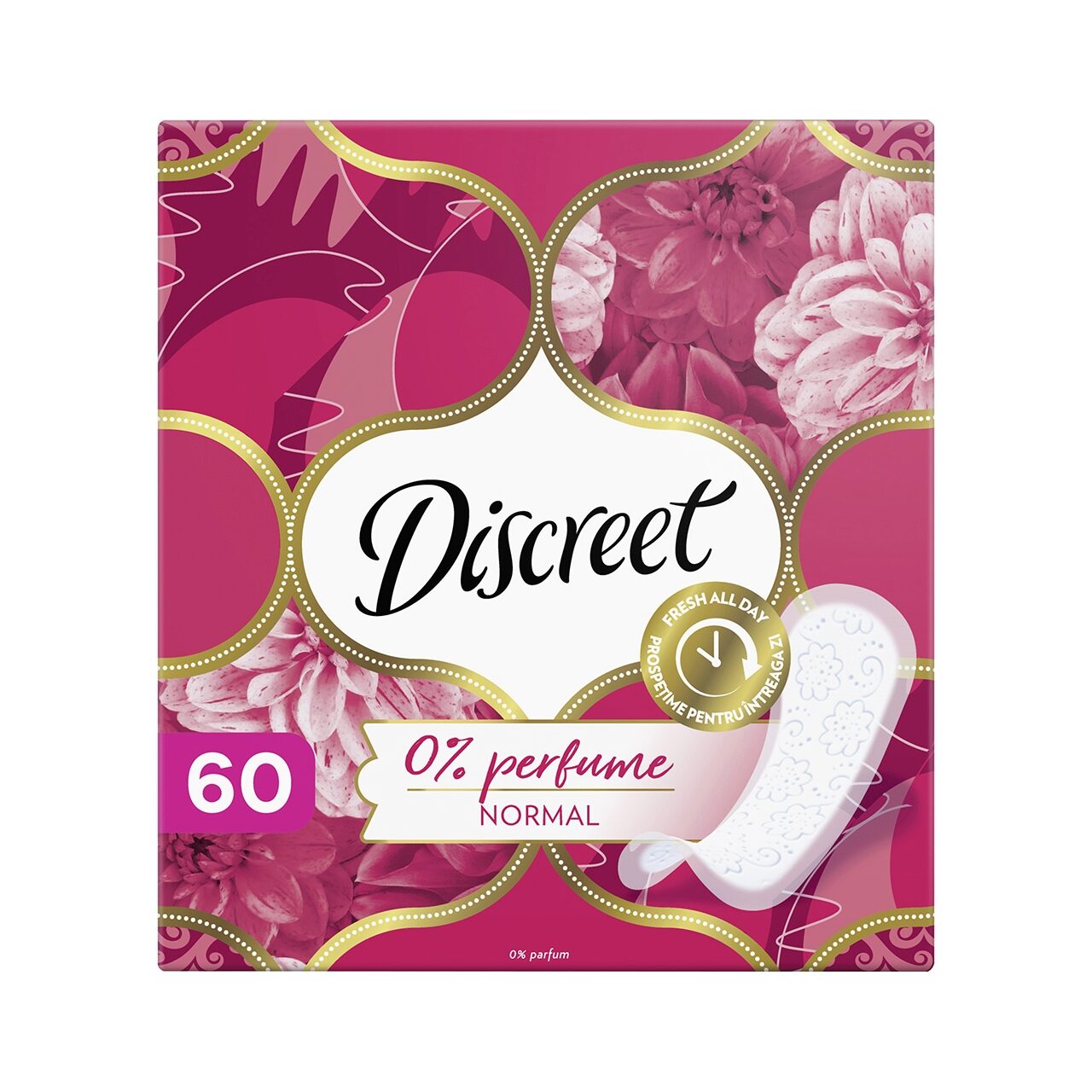 Protej-slip de bază, ultra-subțire, pentru prospețime zilnică. Se adaptează ușor la mișcare și rămâne discret sub haine. 🌤️ (Gama Discreet: poziționare ca protej-slipuri subțiri, parfumate/neutre în funcție de variantă).