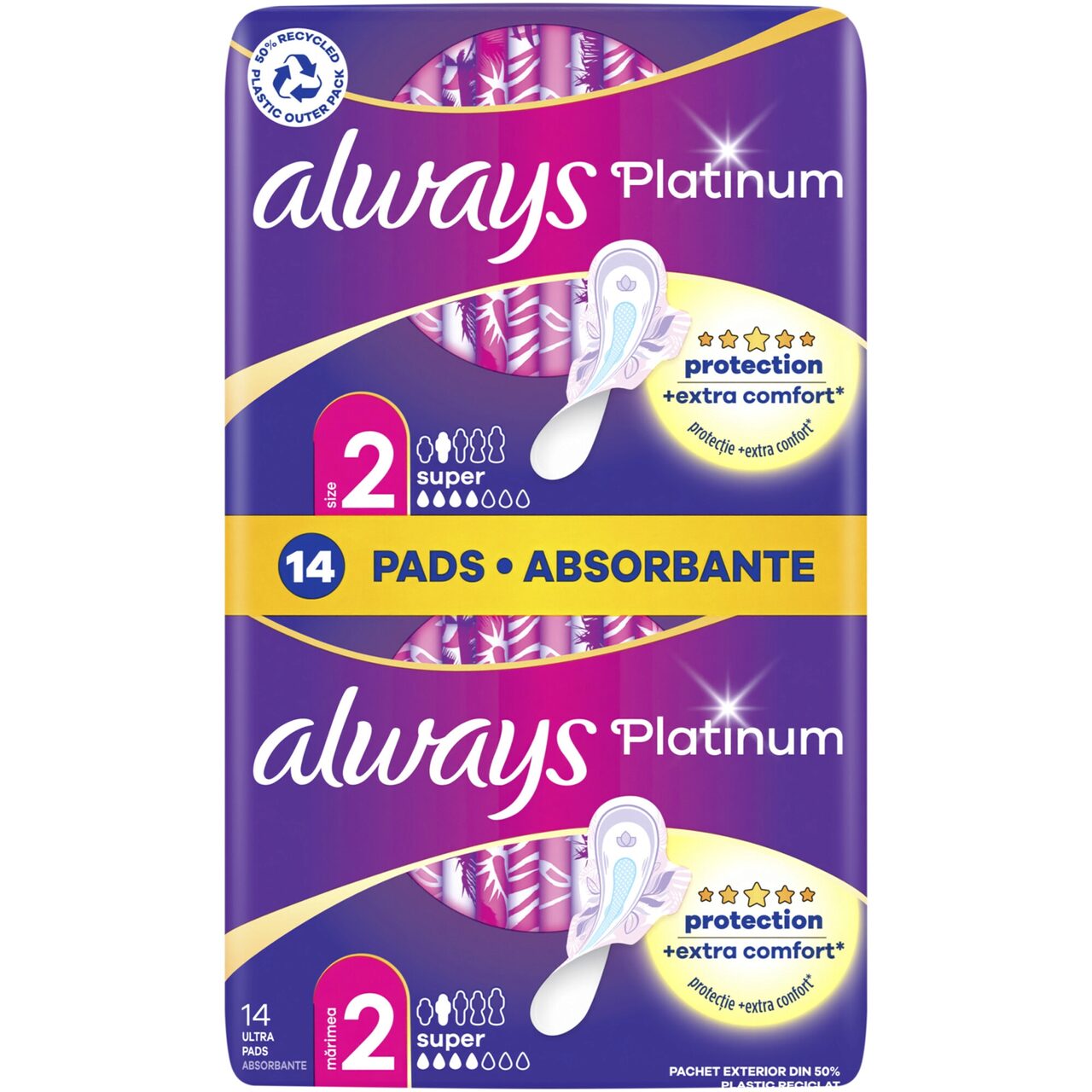 Absorbante Always Platinum Super, Pachet Duo, Mărimea 2, 14 bucăți